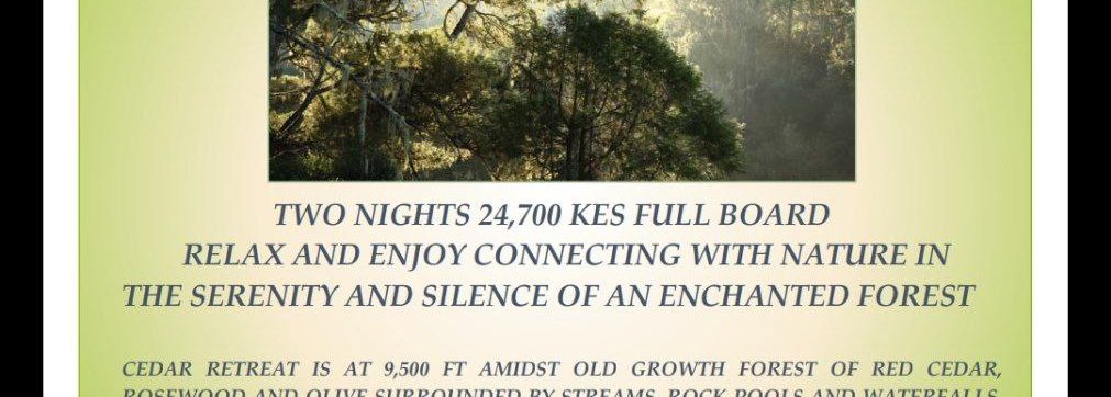 If transport is required to Cedar Retreat from Nairobi please indicate this when you book. We try and encourage participants on retreats to make use of this to avoid multiple vehicles burning fuel and to lessen the carbon footprint of the retreat experience. It is roughly a five hour drive to the retreat, and not easy to find. Park fees are additional payable to KWS at Shamata Gate. Depending on how many make use of the 8 seater minibus the cost to and from Nairobi (roughly a four hour drive ine way) is roughly between 3,000-6,000 (3-6 persons) per person.