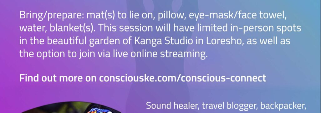 You can attend this Sound Healing in-person in the beautiful garden of Kanga Studio in Loresho, to benefit from the live vibrations of the bowls that resonate on the cellular level with water in the body (Limited slots, 1000/-). Please confirm your space by calling 0717685161 or 0708717259.